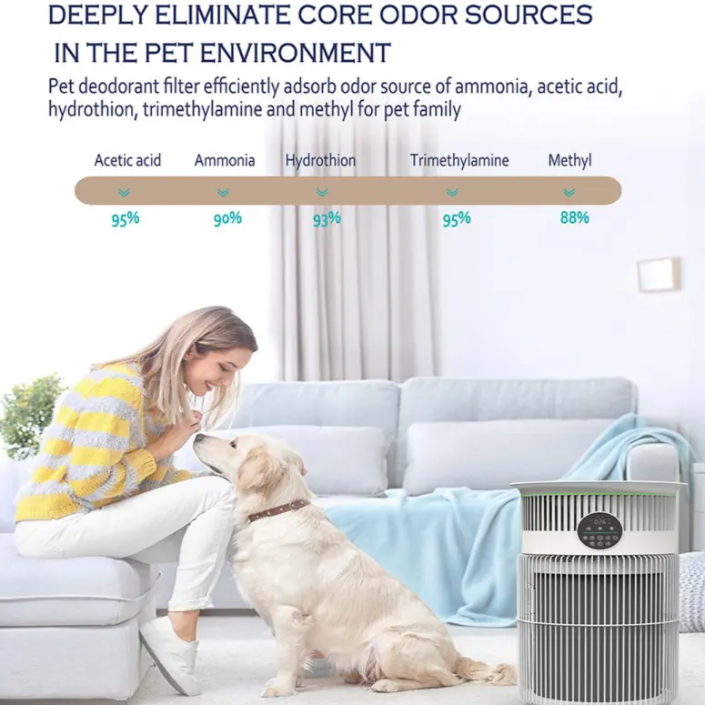 Filter material: Primary filter+H13 HEPA filter+Modified activated carbon for pets