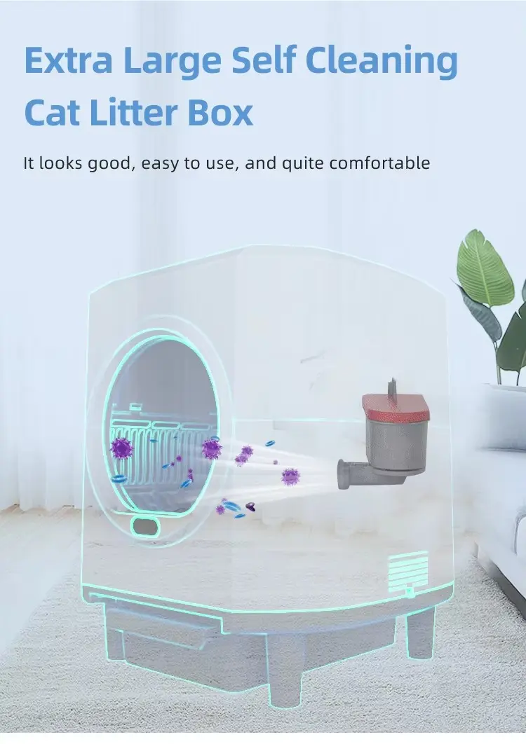 This is the new model with smart litter box features a large 90-liter capacity, suitable for cats weighing 1.5 kg to 12 kg. It offers automatic cleaning to free your hands, making daily waste management effortless. The cat toilet is very popular! Factory direct sales with DDP service available. Contact us for more details!