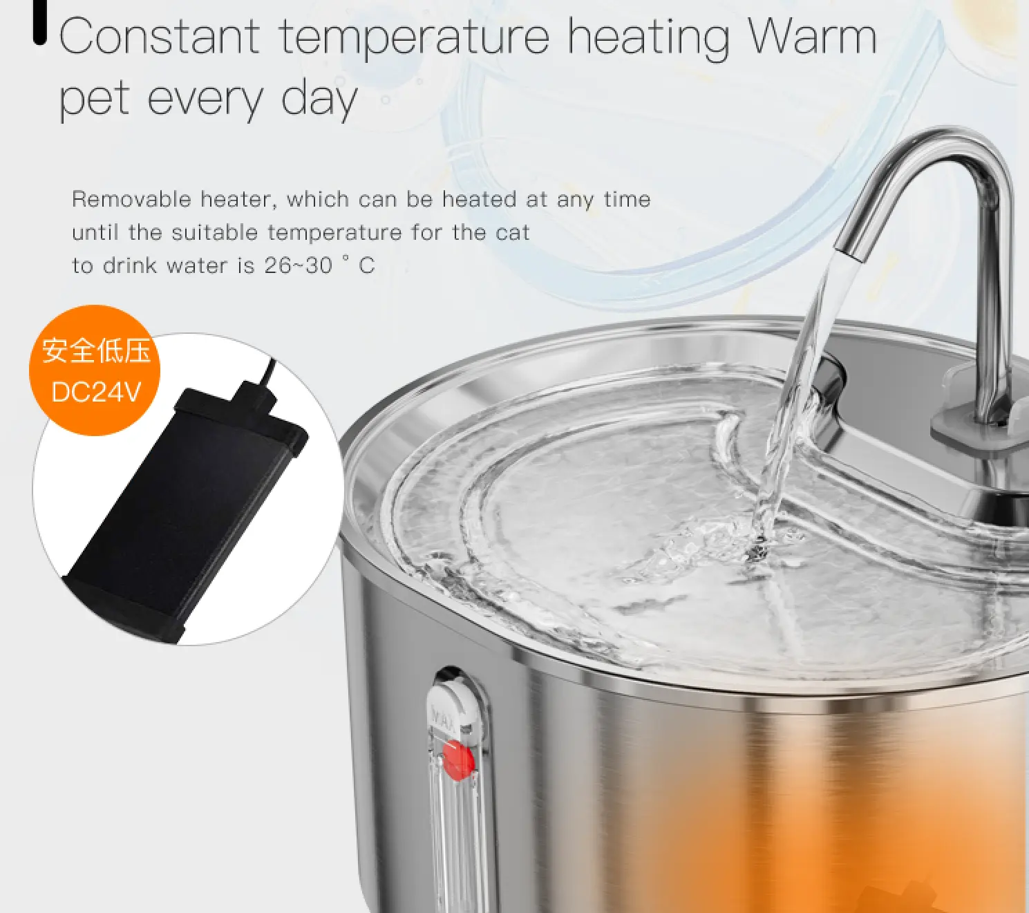 This is cat water fountain with SS304 material. 3.2L large capacity. Suit for cat and dogs. We are the factory to produce this model. It makes fresh water! The cat water fountain is very popular! Factory direct sales with DDP service available. Contact us for more details!