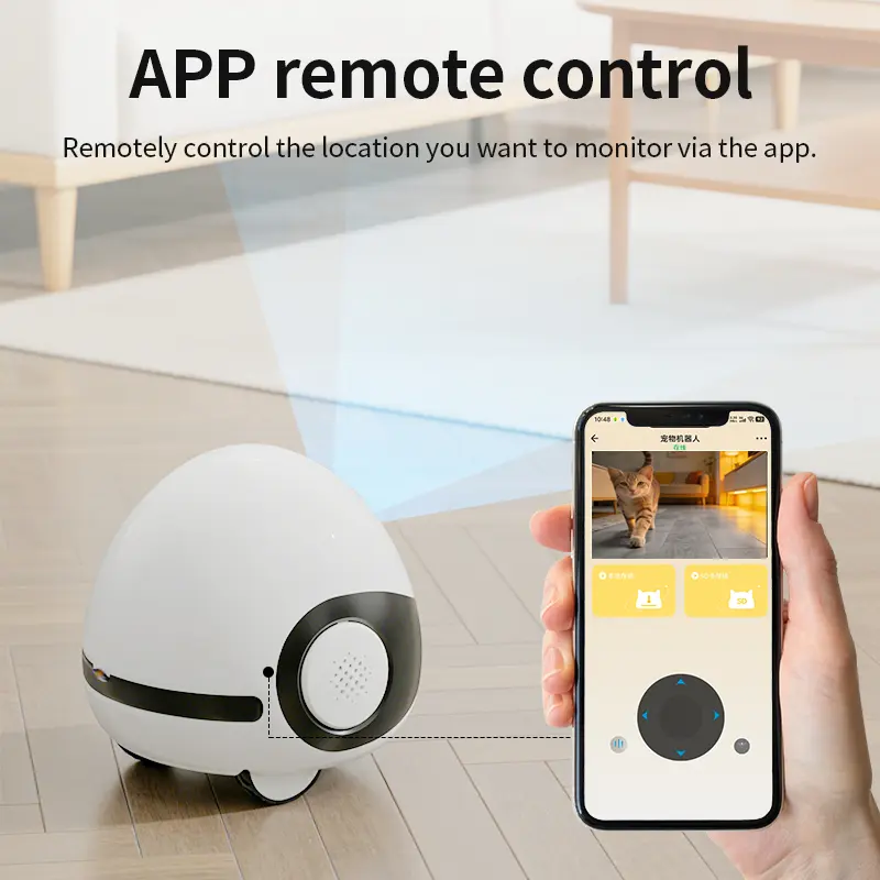 This is pet smart monitor robot with retractable camera. You can see your pet in real time. Even when you’re away from home, you can still keep your beloved pet company with peace of mind—monitoring their every move at any time.