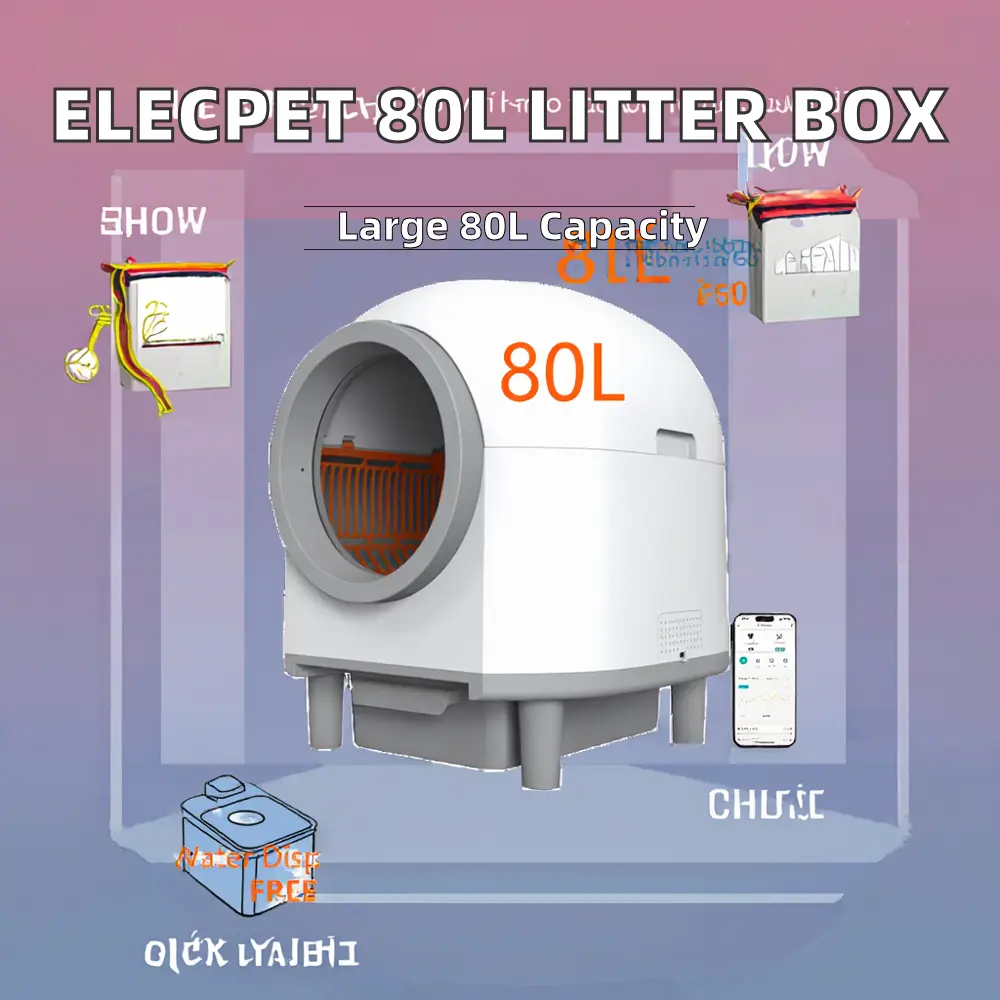 This is the new model with smart litter box features a large 80-liter capacity, suitable for cats weighing 1.5 kg to 12 kg. It offers automatic cleaning to free your hands, making daily waste management effortless. The cat toilet is very popular! Factory direct sales with DDP service available. Contact us for more details!