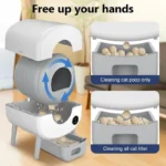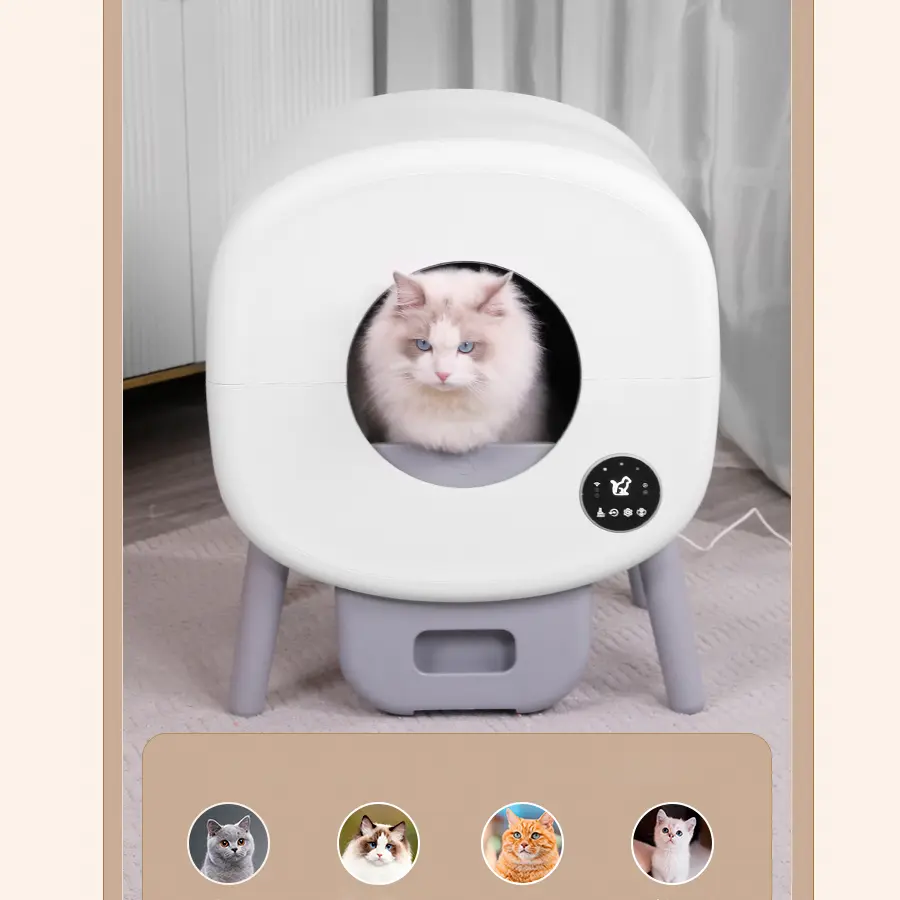 This is the update model with smart litter box features a large 76-liter capacity, suitable for cats weighing 1.5 kg to 12 kg. It offers automatic cleaning to free your hands, making daily waste management effortless. The cat toilet is very popular! Factory direct sales with DDP service available. Contact us for more details!